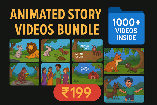 Cartoon moral stories, shorts, and reels — perfect for YouTube, learning channels, and kids’ content. All videos are royalty-free and ready to upload, so you can grow and earn without copyright worries.